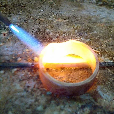 Metal is up to correct temperature and solder flows! Approximately 2300° F