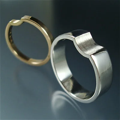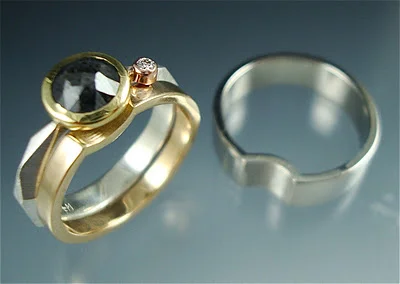14k yellow gold & 950 Palladium Reverse Radius Wedding Rings